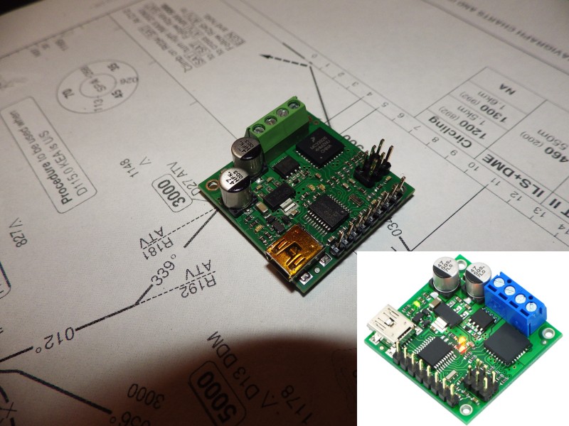 Standard servo so can be driven with the POLOLU or OC card. Just